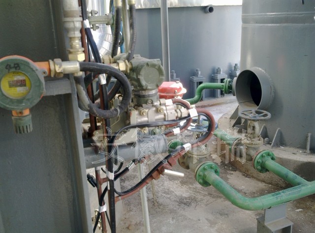 壓力變送器液位計(jì)常應(yīng)氣候溫度過(guò)低,造成堵塞現(xiàn)象,需要電伴熱防凍,渝豐化工要求其冬季維持溫度為5--10℃,并且要求電伴熱帶具有防爆防腐功能。安徽環(huán)瑞提供ZRDHR-PF46滿足客戶對(duì)使用場(chǎng)合及維持溫度要求,其最高表面溫度為70℃,耐溫可達(dá)200℃??杀WC維持溫度的情況下,不會(huì)出現(xiàn)溫度過(guò)高的情況,更加經(jīng)濟(jì)安全,而針對(duì)現(xiàn)場(chǎng)細(xì)長(zhǎng)狹窄的地方自限溫電熱帶可實(shí)現(xiàn)交叉纏繞,解決局部伴熱的問(wèn)題。以下為現(xiàn)場(chǎng)施工安裝圖: