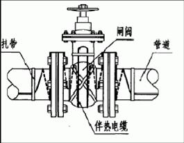 5、一切散熱體(如支架、閥門、法蘭等)應(yīng)按設(shè)計(jì)圖請(qǐng)求預(yù)留所需電伴熱帶長(zhǎng)度,將此段電伴熱帶纏繞于散熱主體上并固定。