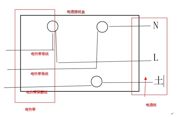 2、2電熱帶一定要接地,可將電熱帶屏蔽網(wǎng)與電源接線盒連接,如下圖: