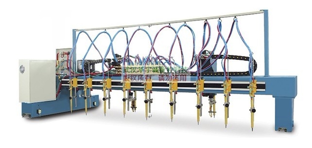 GS/Z-4000火焰多頭直條切割機(jī)(H型鋼數(shù)控切割機(jī))HGZ-4000數(shù)控/多頭直條火焰切割機(jī)HGZ-4000型龍門式直條數(shù)控切割機(jī)屬于一款多功能型數(shù)控切割機(jī)。 當(dāng)需要把一塊鋼板切割成若干個(gè)等寬直條的時(shí)候,可以在數(shù)控切割機(jī)上配以直條割炬,能一次性把鋼板切割成多個(gè)直條,有效的提高切割效率,并且能使切割時(shí)直條兩側(cè)受熱均勻,避免產(chǎn)生較大的熱變形。